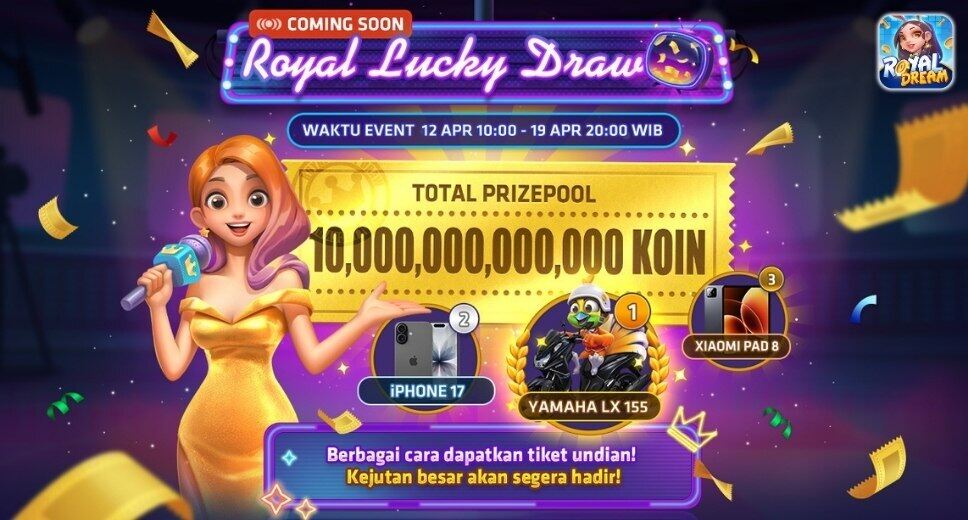 Royal Lucky Draw resmi dimulai di Royal Dream! Kumpulkan tiket, menangkan Yamaha LX155, iPhone 17, dan hadiah menarik lainnya.